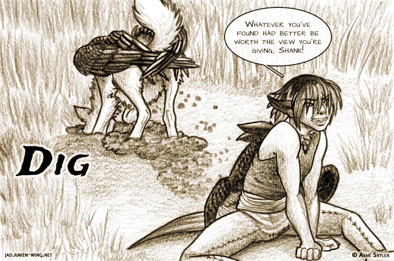 "Whatever you've found had better be worth the view you're giving, Shank!" Katari growled as Shanku had her haunches high in the air while she dug a hole deeper and deeper.