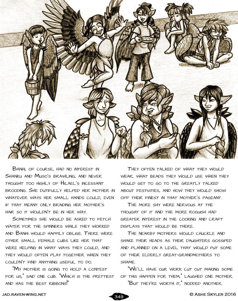 Sometimes she would be asked to fetch water for the spinners while they worked and Banhi would happily oblige. There were other small female cubs like her that were helping in what ways they could, and they would often play together when they couldn't find anything useful to do.
